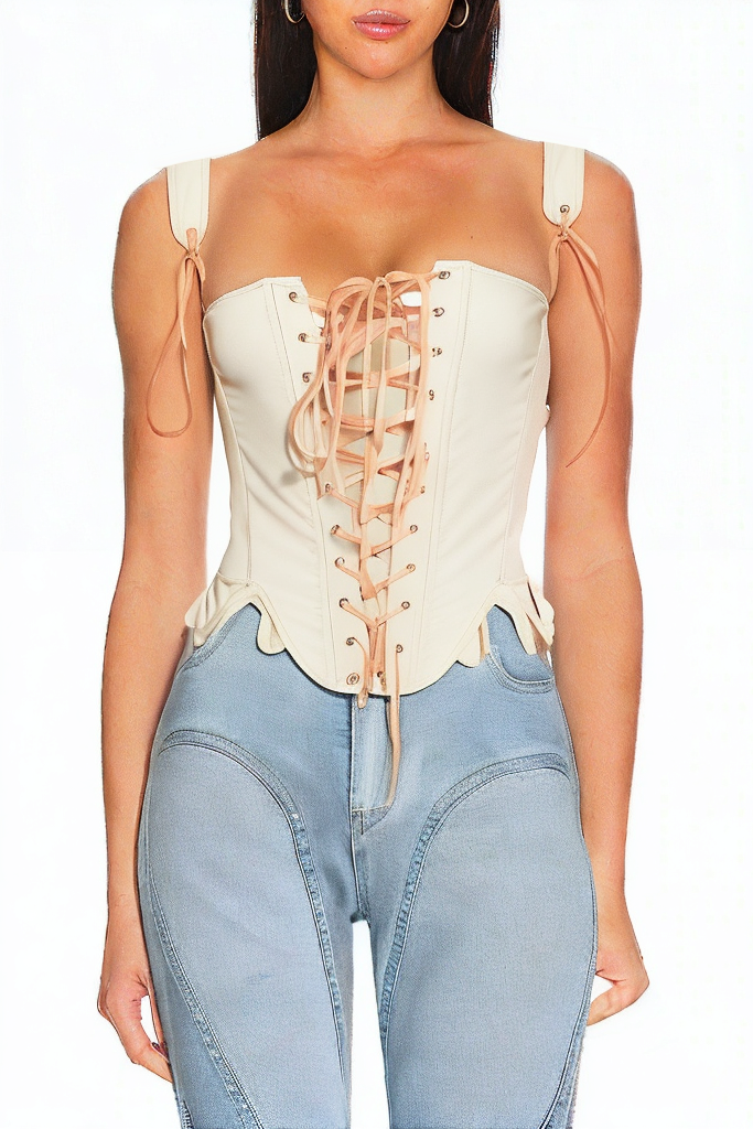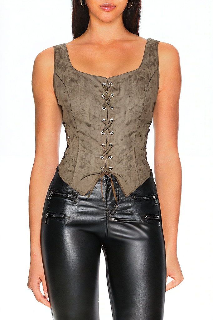 Product Description Show off your style with our corset top. With playful fringe and a chic faux suede finish, this corset top is the perfect addition to your bohemian wardrobe. Product Features Bohemian Fringe Hem The stylish fringe detail adds a fun and playful feel, perfect for summer festivals or casual outings. V-Neck Design