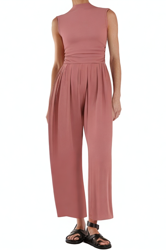 Product Description Discover the perfect blend of elegance and comfort with our women’s summer jumpsuit. This dressy casual one-piece outfit features a sleeveless design and a chic mock neck, making it suitable for various occasions. The wide-leg pants create a flattering silhouette, while convenient pockets add functionality without compromising style. Product Features Sleeveless Design