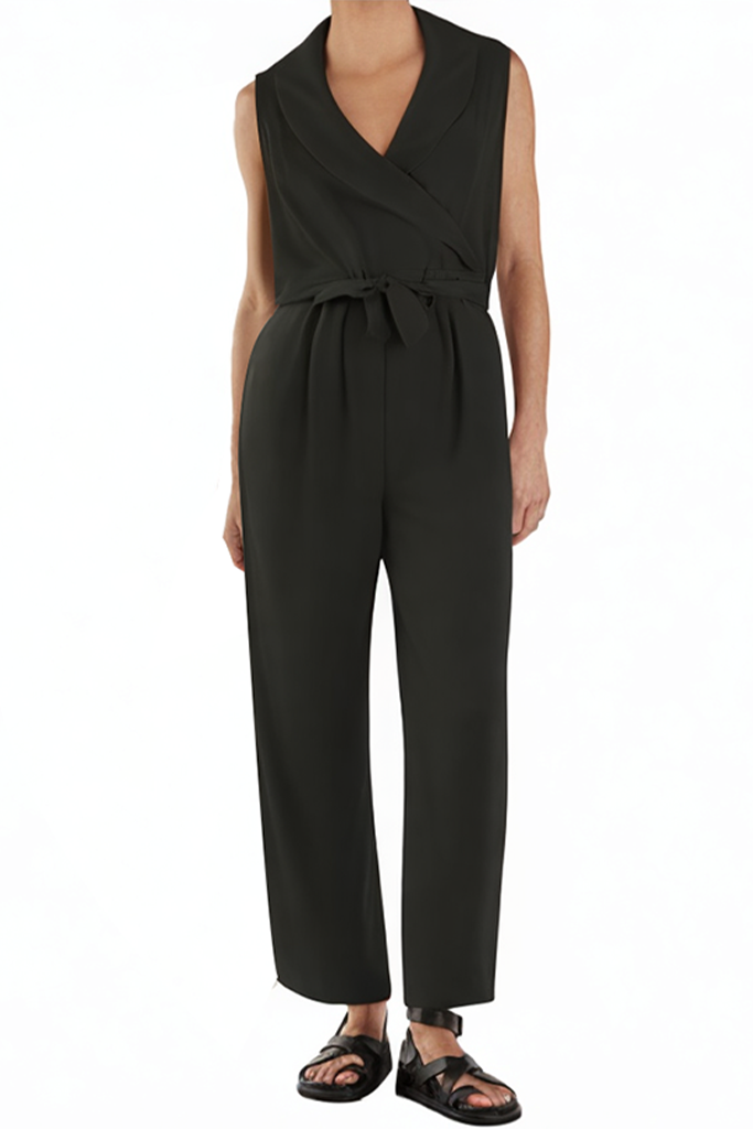 Product Description Elevate your formal wardrobe with our stunning jumpsuits for women. This elegant piece features a cross V-neck design, sleeveless cut, and a flattering high tie waist, making it perfect for dressy occasions. Product Features Chic Cross V-Neck The stylish cross V-neckline adds a touch of sophistication, enhancing your silhouette. Sleeveless Style Perfect