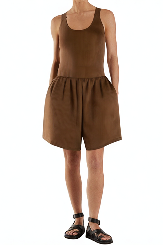 Product Description Upgrade your fitness wardrobe with our women’s jumpsuit. Featuring a stylish ribbed design and a flattering V-neck, this sleeveless jumpsuit is perfect for all your workout needs. It features a tummy control feature, provides support and a smooth silhouette, perfect for everyday life or casual outings. Product Features Ribbed fabric Provides a