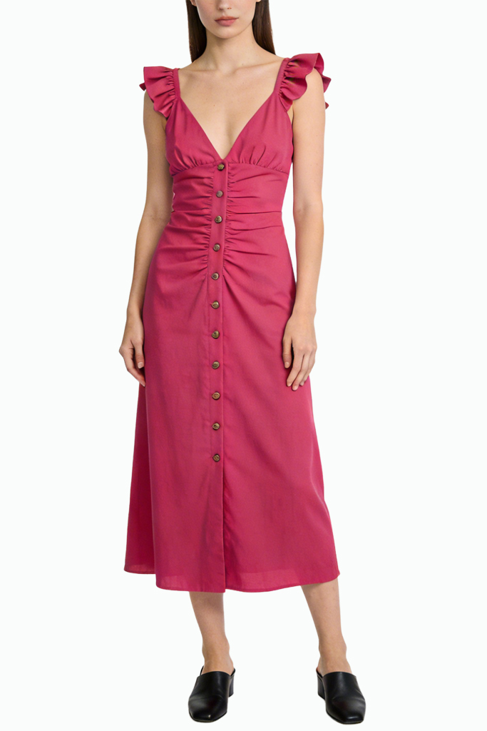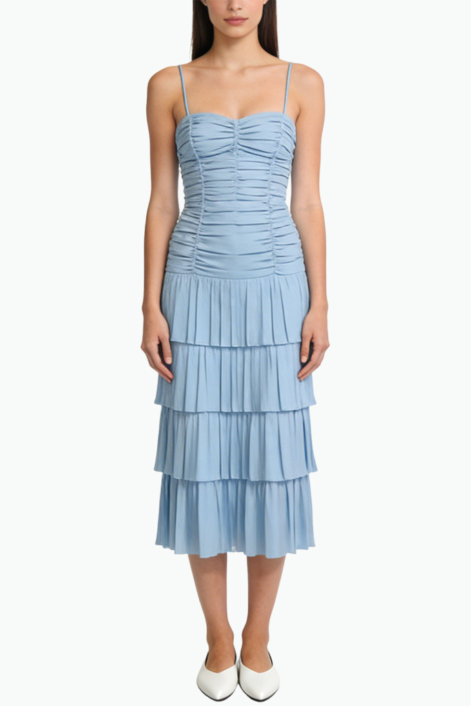 Elegant Midi Design This classic midi dress features a length that naturally extends from below the knee to the calf, visually elongating the figure and creating a taller, more slender silhouette. The overall cut is smooth and sophisticated, with clean and crisp lines. It’s versatile enough for both commuting to the office and everyday outings.