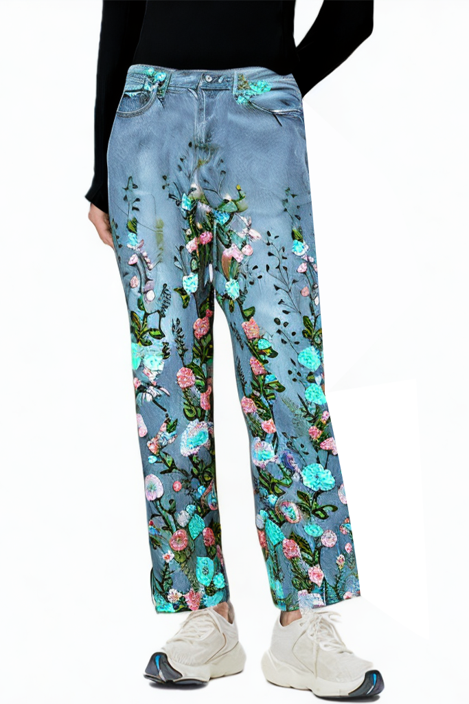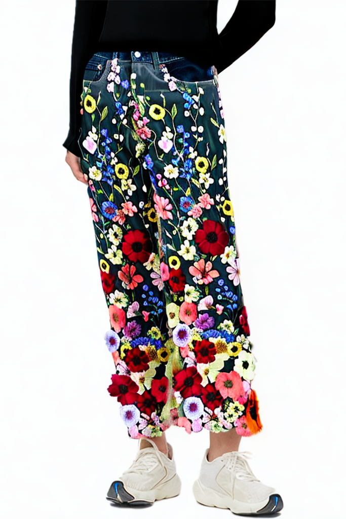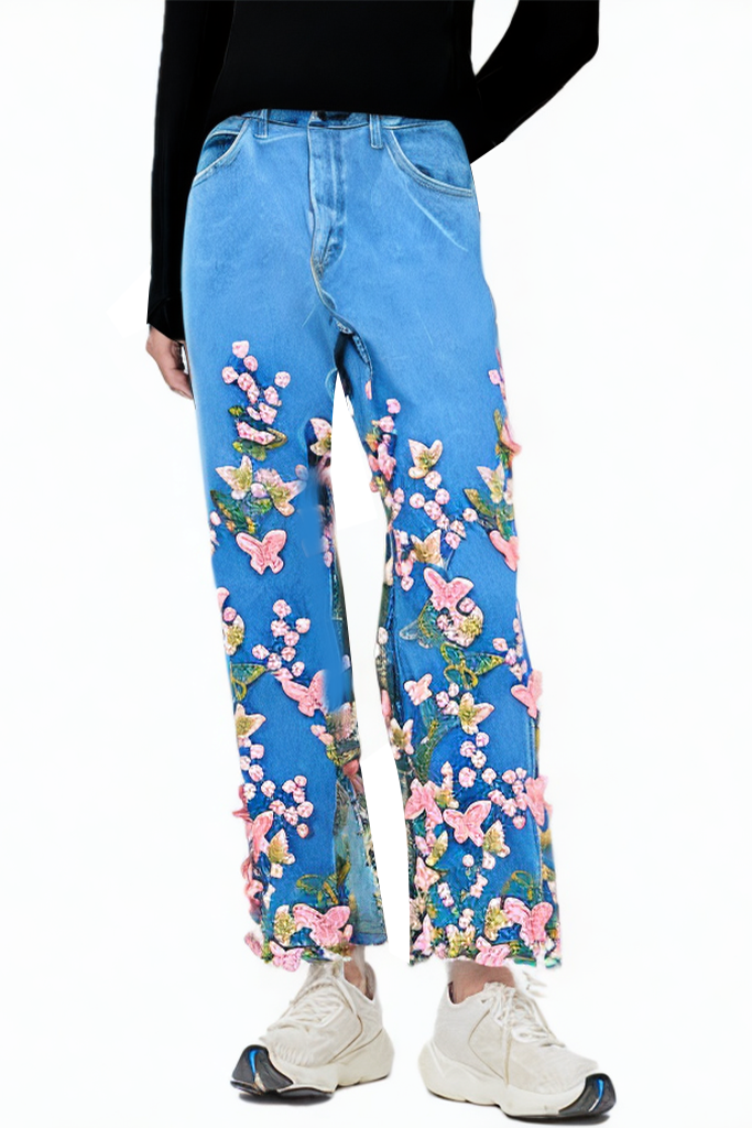 Product Description Upgrade your style with our floral embroidered jeans. These chic jeans feature stunning floral embroidery that adds a unique touch to your outfit. Perfect for casual outings or formal occasions, these jeans are designed to combine comfort with style. Product Features Charming Embroidery Intricate floral patterns adorn the jeans, making them a standout