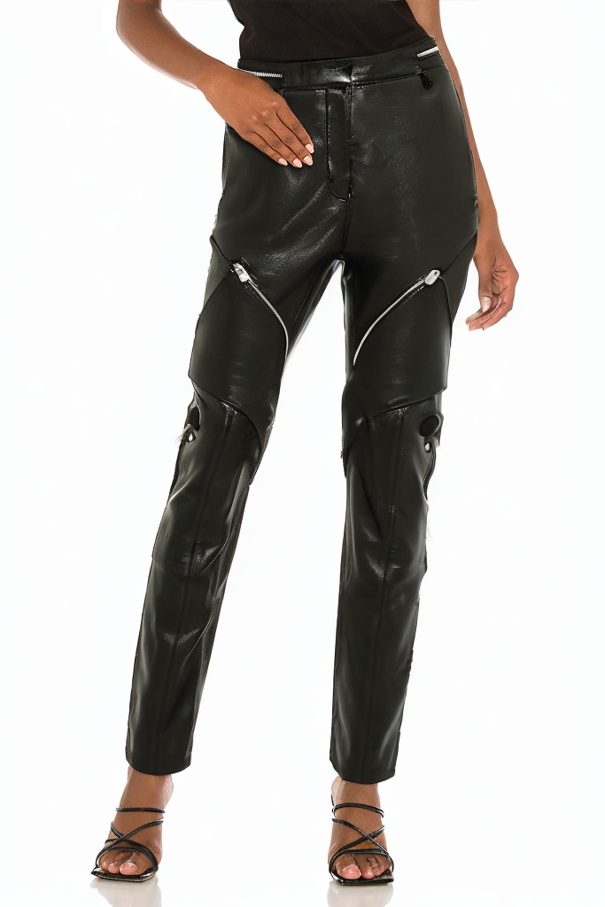 Product Description Unleash your bold style with our Matte Leather Trousers. These women’s leather trousers feature a sexy double zipper design that adds an edgy touch to your wardrobe. Perfect for a night out or a statement outfit. Product Features Matte Faux Leather Made from premium matte leather for a sleek, sophisticated look. Elastic High