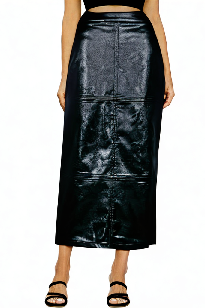Product Description Elevate your wardrobe with our trendy high-waisted A-line long skirt, designed for women who appreciate style and versatility. This leather maxi skirt features a stylish slit, making it perfect for both business casual settings and dressy occasions. Product Features Chic Design The A-line silhouette flatters all body types, providing a feminine touch