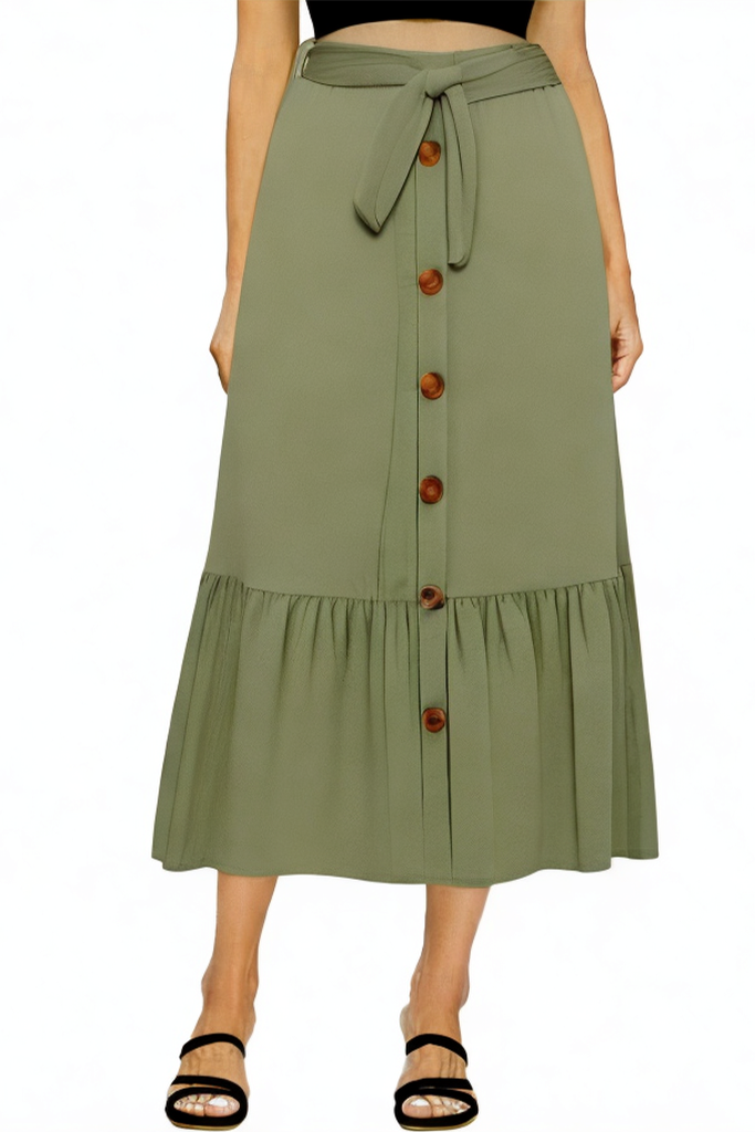 Product Description Introducing our premium maxi skirt featuring a stylish button front and high waist. Combining playful ruffles with practicality, this maxi skirt is a must-have for any young fashionista. Product Features Button Front Closure Button detailing adds a stylish touch while making for easy dressing and adjustment. High Waist Fit Designed with a