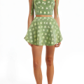 The flared A-line mini skirt offers a flattering fit and playful movement, pairing perfectly with the crop top.
