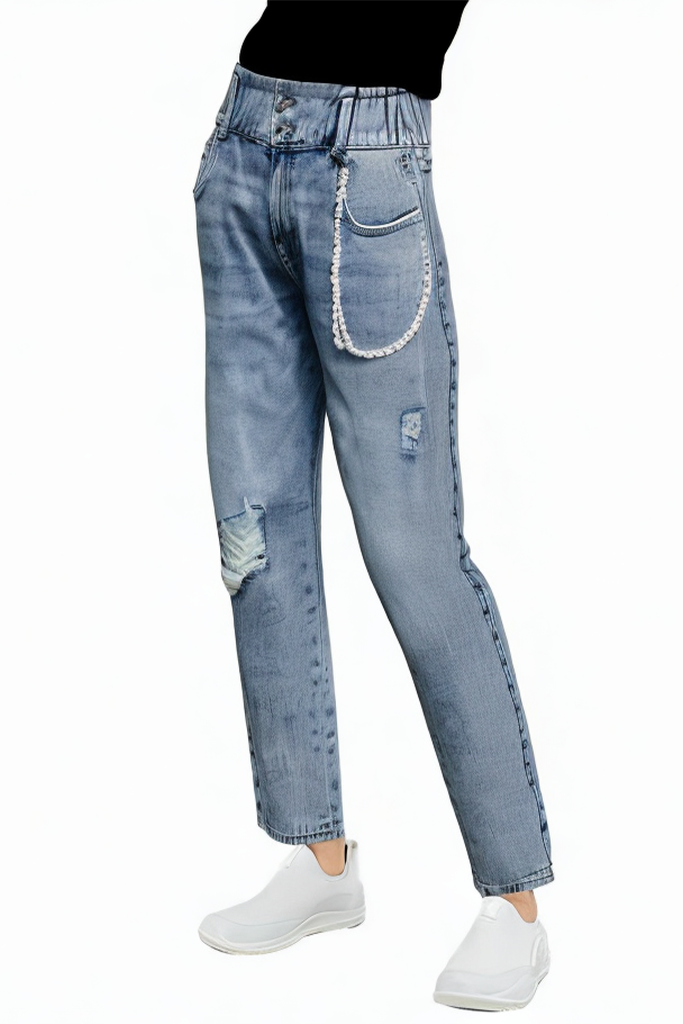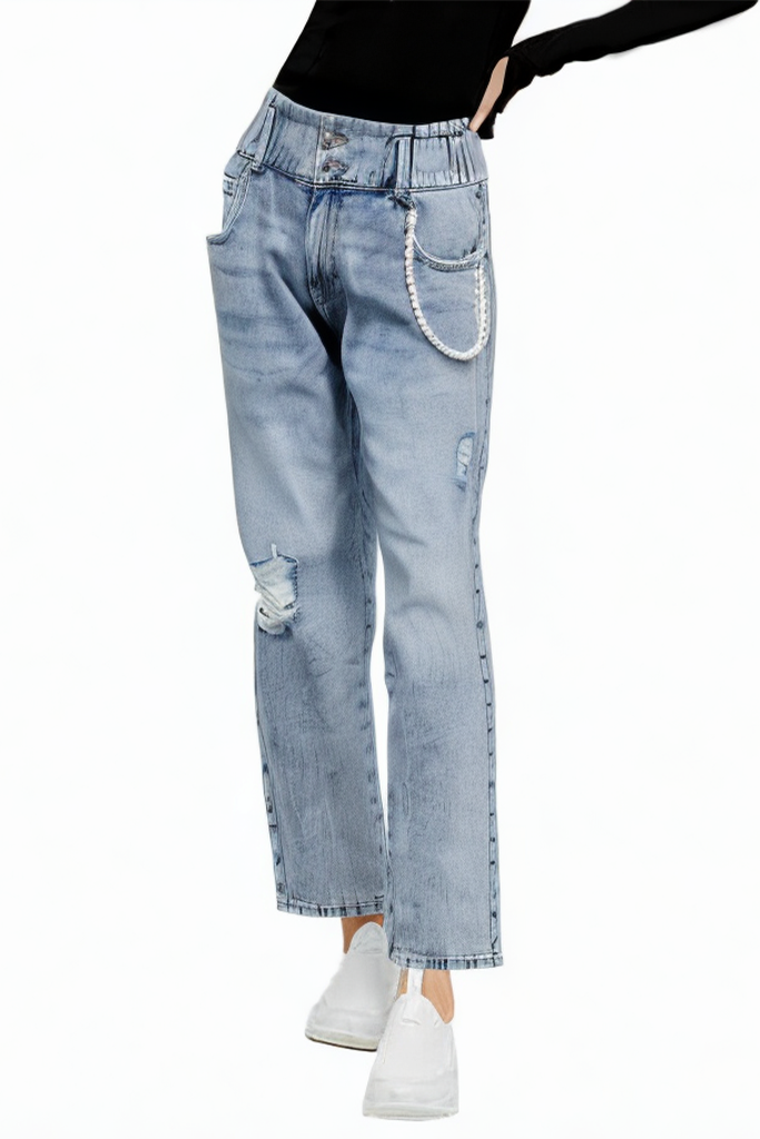 Upgrade your denim style with our women’s jeans. Made from premium denim in a chic blue color, these skinny jeans easily match any outfit. Unique pearl detailing adds a touch of elegance, perfect for both casual and formal occasions.