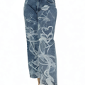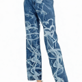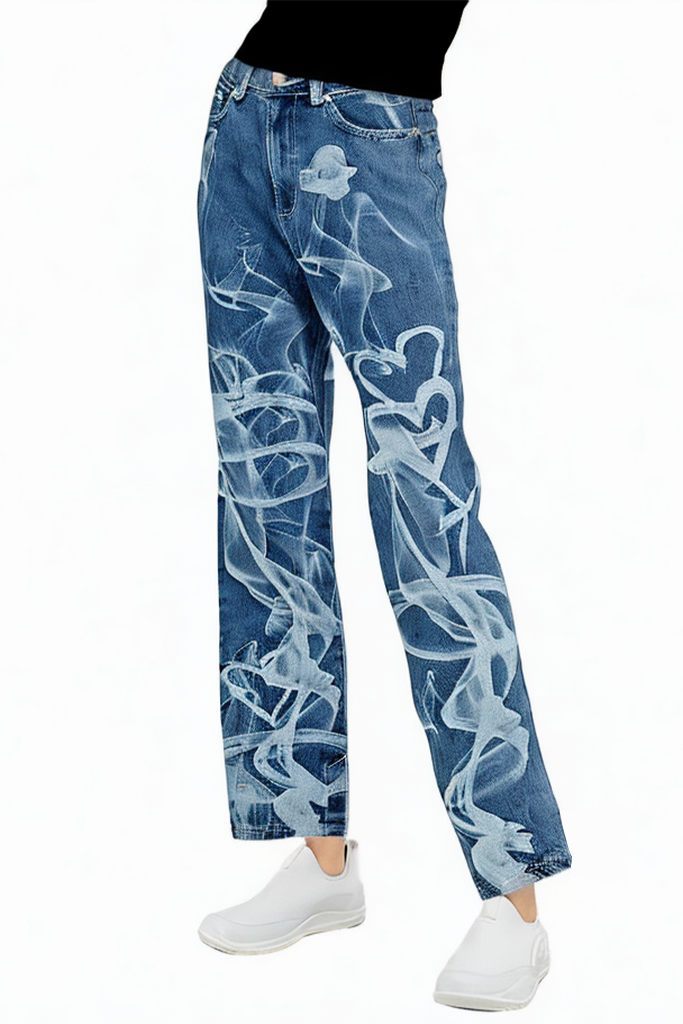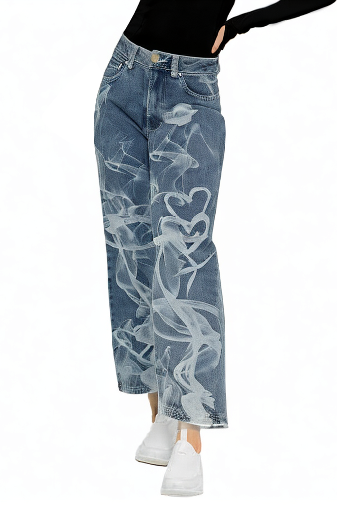 Popular Smoke Print Cotton High Waist Straight Jeans