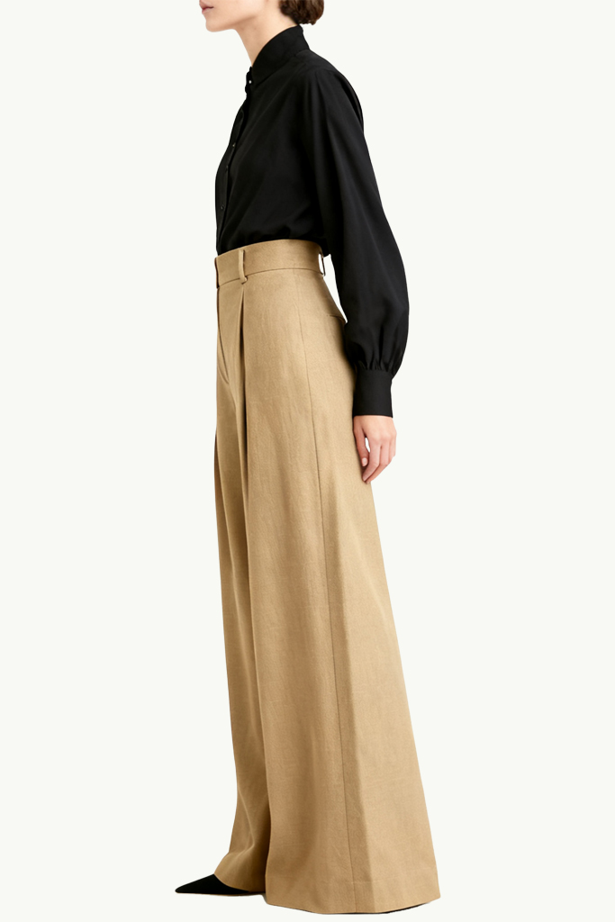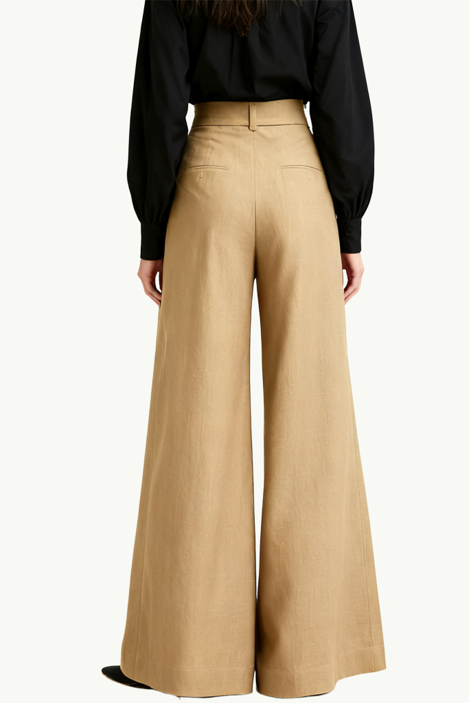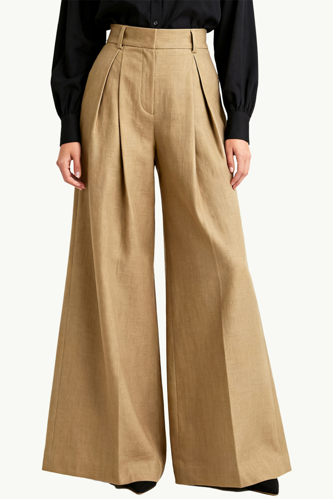 These wide-leg pants feature a loose, flowing cut that effortlessly conceals leg lines, creating a slimming and elongating effect. The naturally draping style exudes feminine elegance and suits various body types.