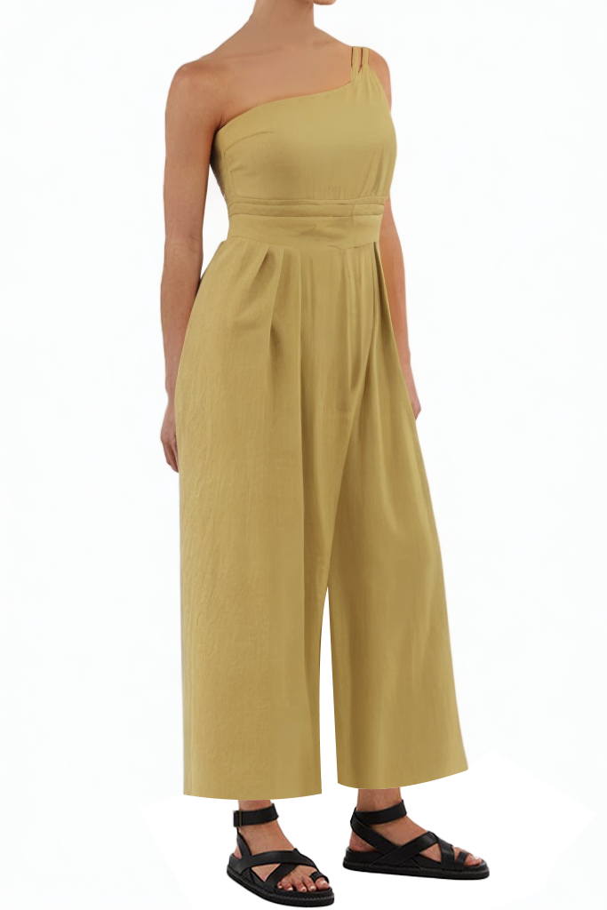 Summer One-Shoulder Sleeveless Backless High Waist Jumpsuit