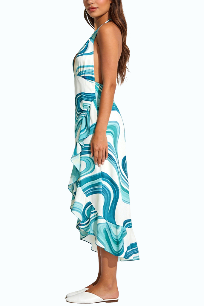 Vacation Style Halter Neck Irregular Midi Dress