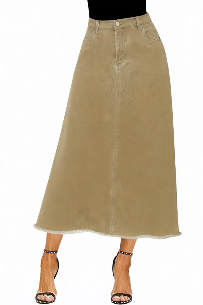 The stylish frayed hem adds a touch of rustic charm and uniqueness, giving each skirt a unique look.