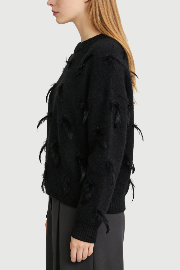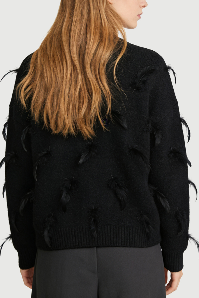 Women’s Crew Neck Feather Decor Trendy Unique Loose Sweater