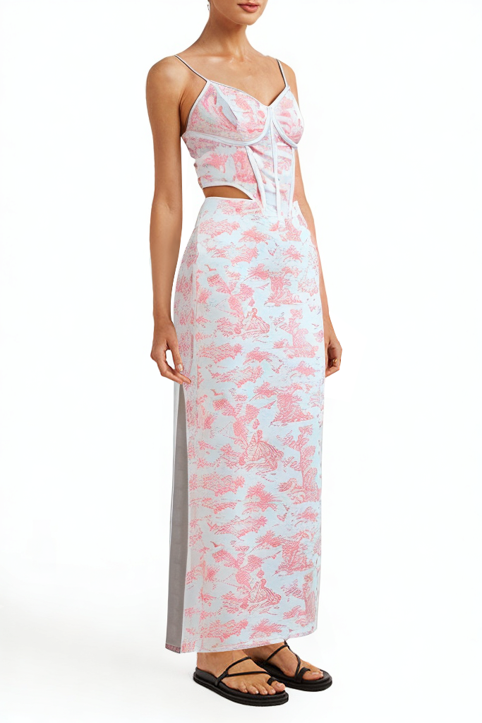 Women’s Floral Sleeveless Corset High Slit Bodycon Maxi Dress Set