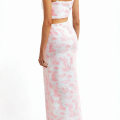 Embrace summer elegance with our women’s skirt set, featuring a floral sleeveless bustier crop top and a high-slit bodycon maxi skirt. This stunning set is perfect for a beach outing, a garden party, or any occasion where you want to make a splash.