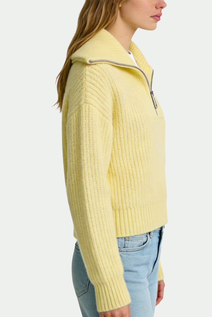 Women’s Half-Zip Chunky Knit Texture Stylish Sweater