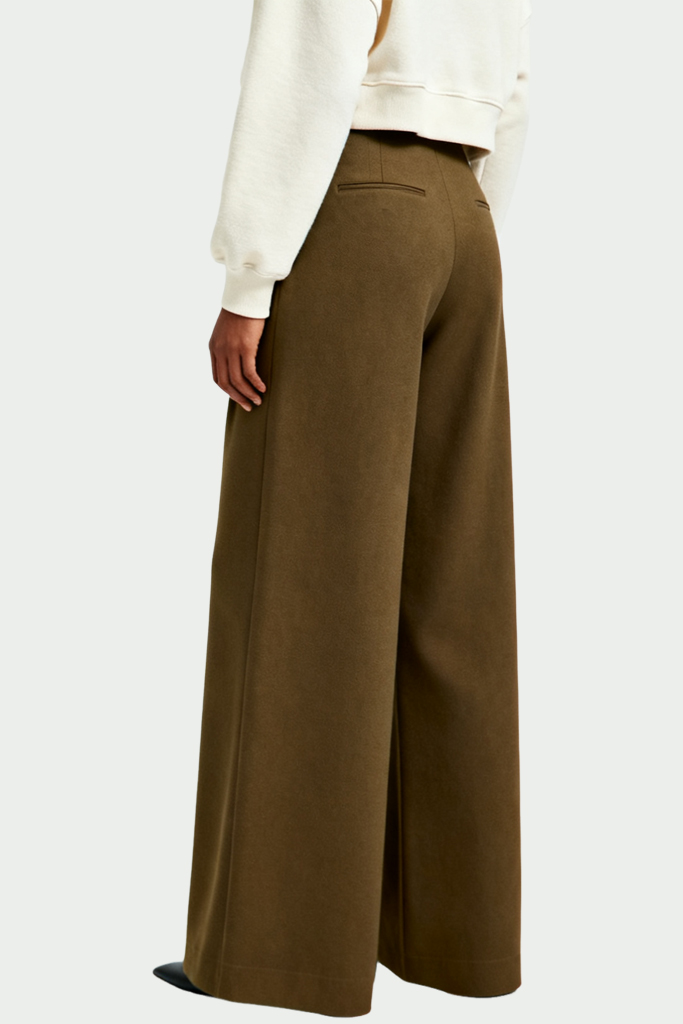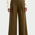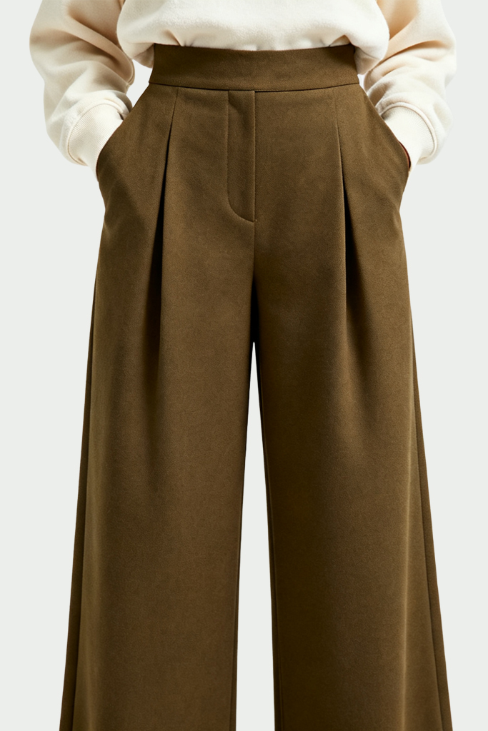 These wide-leg pants feature a loose, flowing cut that effortlessly conceals leg lines, creating a slimming and elongating effect. The naturally draping style exudes feminine elegance and suits various body types.