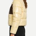 Women’s Stand Collar Color-Block Pocket Decor Casual Thick Jacket